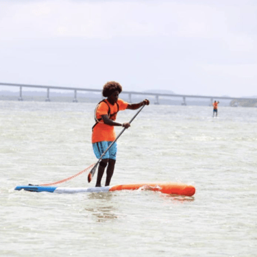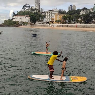 Junte-se à nossa academia para aprender habilidades de stand-up paddle com o treinador experiente Danilo Anderson, na Bahia.